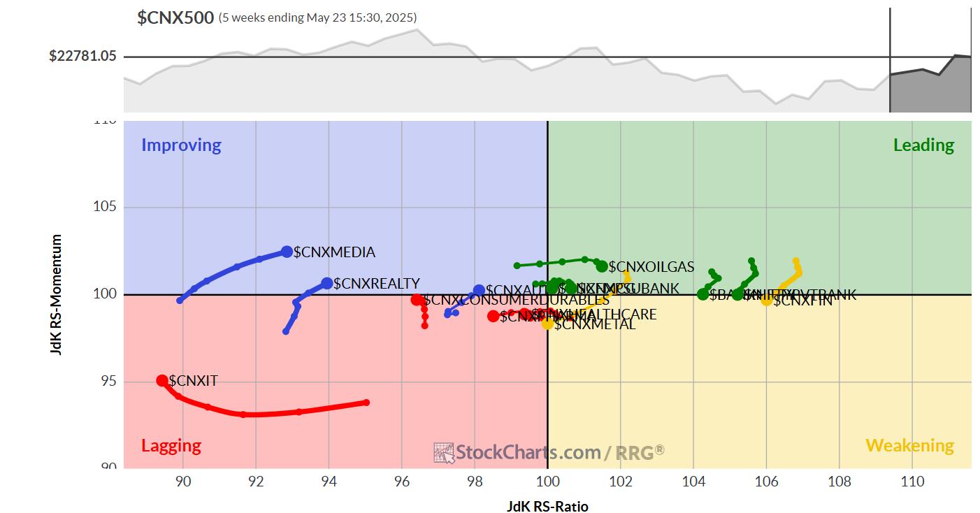 In our look at Relative Rotation Graphs®, we compared various sectors against the CNX500 (NIFTY 500 Index), representing over 95% of the free-float market cap of all the listed stocks.